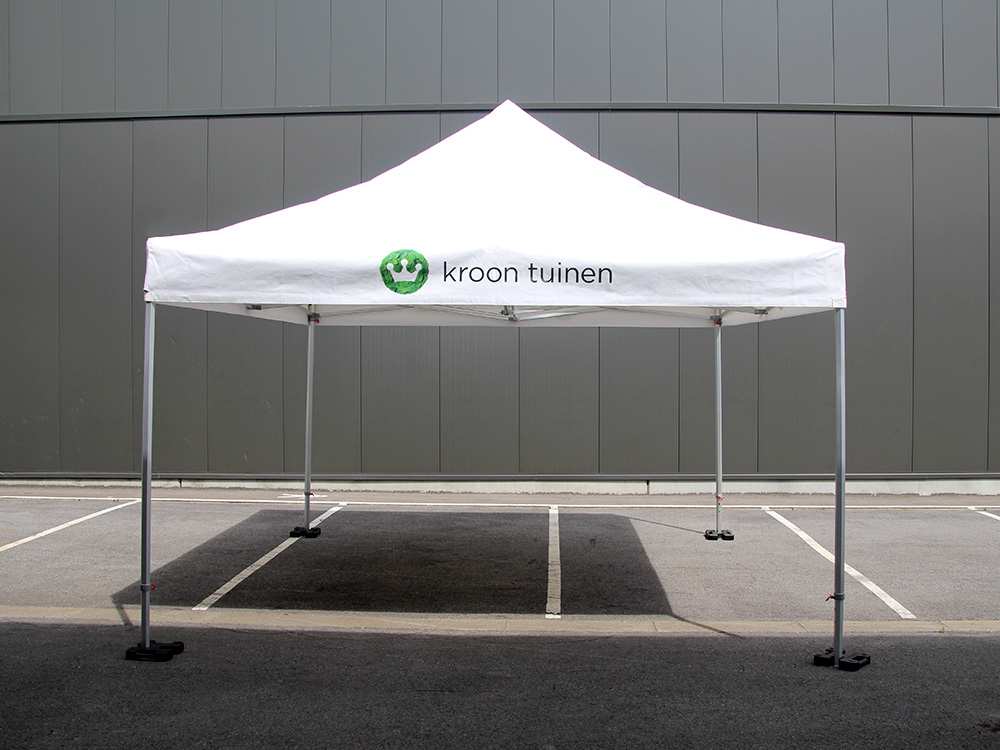 Uw boodschap opvallend, groot en duidelijk zichtbaar voor uw doelgroep? Wij voorzien uw PVC plooitent van fullcolour bedrukking. Het ontwerp is steeds inbegrepen in de prijs en kan aangepast worden tot u tevreden bent. Onze vouwtenten zijn verkrijgbaar in verschillende maten: 3x3, 3x4,5, 3x6, 4x4 en 4x8. Zowel het dakzeil als de zijwanden kunnen voorzien worden van uw logo.