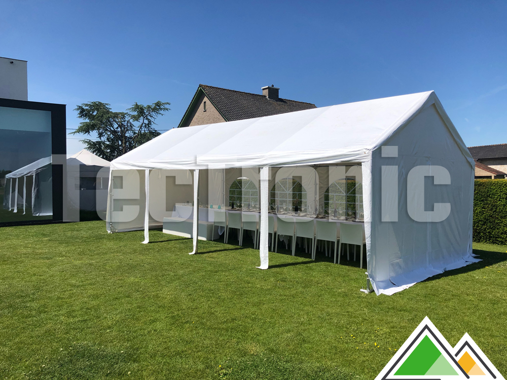 Onze PE en polyester partytenten worden dikwijls gebruikt als communietenten. Ze zijn voordelig geprijsd, superdegelijk en ideaal om af en toe eens op te stellen. Perfect dus voor een feestje op tijd en stond! Staan er de komende jaren nog Eerste of Plechtige Communies op het programma in uw gezin? Dan raden wij u een feesttent met PVC zeilen aan. Die hebben een langere levensduur en zijn volledig winddicht!