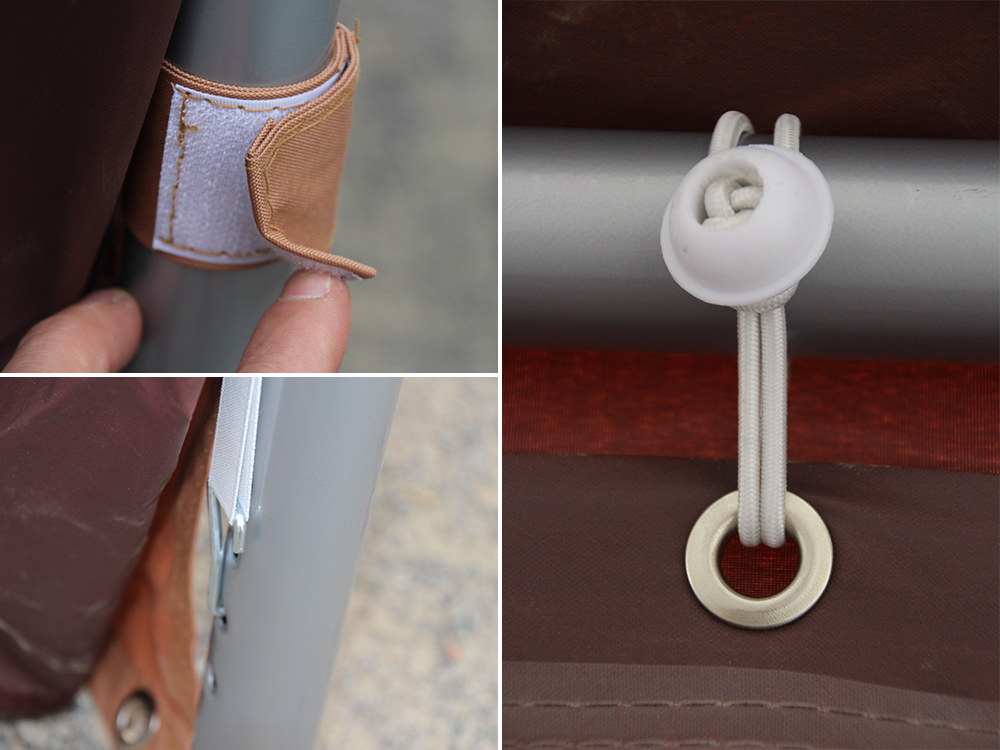 Dakzeil en zijwanden zijn waterdicht en vervaardigd uit polyester (260 gr/m²) met pvc-coating.