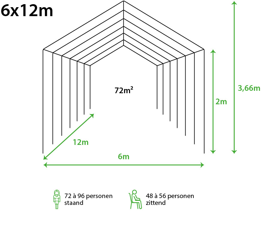 Deze PVC partytent van 6x12 meter is geschikt voor professioneel gebruik en is ook brandvertragend (getest voor M1/M2; EN-13501-1; DIN 4102 B1/B2).