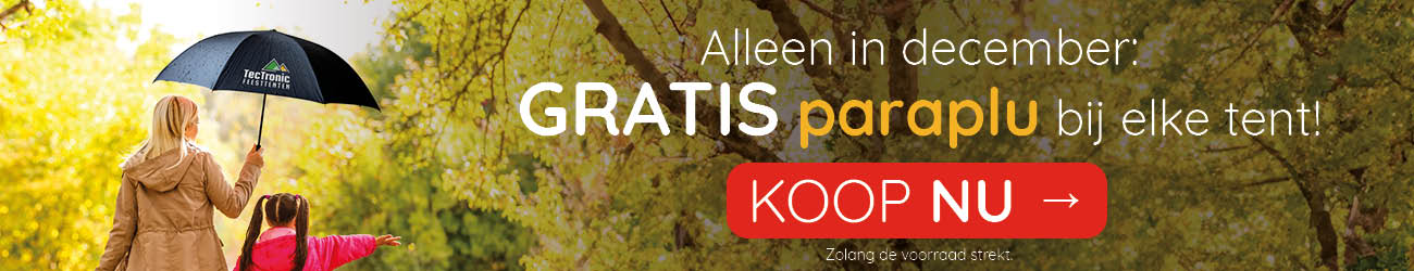 Promo: gratis paraplu bij aankoop van een tent